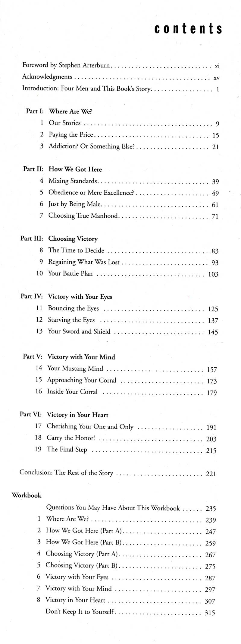 Steven Arterburn and I have written this book to open the understanding of both men and women to their created differences, and how these differences impact their lives sexually. This book was written as a weapon against male sexual impurity. When I personally fought this battle, there were no books to be found on the topic. Even now, there are few books in the Christian arena on sexual impurity, and those that exist generally have little more than a single chapter devoted to “getting free”. Every Man’s Battle devotes at least 7 chapters to the practical details necessary for total and lasting victory. [more] »