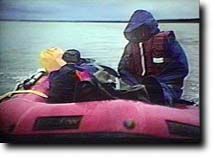 The rescuersThen it happened. Mike spotted two Eskimo speed boats heading down river towards Nuiqsut! They had been hunting and fishing up river and were the same boats we had seen several days earlier. Mike was the only one to see them and he was able to get their attention and one of them stopped! Mike was desperate, he told us later he was reaching into his pocket to get the flares out if they had failed to see us. After offering them $50, they agreed to tow us the rest of the way to Nuiqsut that night. It was almost as if they were angels sent from God.