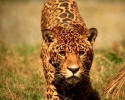 Jaguar, (panthera onca) is one of the largest species of the cat family in the western hemopher. The Jaguar usaly preys apon such anamails as: horse, tapir, capybarra, dogs, and/or cattle. The roar of this great cat can be heard from miles away and is usaly heard at night or during mating season. The Jaguar’s “base” color varies greatly from white to black, of corse these are the extreams. |