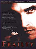 The film “Frailty” sits firmly and strongly in four basic film categories. First, it belongs to that neat subset of films which I call Southern Gothic: films like “Places in the Heart” or with actors like Billy Bob Thornton and Robert Duvall. Films that serve up real old-fashioned Southern storytelling. It also belongs to the “black humor” category: films so dark and twisted they put “Death to Smoochy” to shame. Thirdly, it belongs to that unique American film tradition: the religious epic that masquerades as true crime. Or is that vice versa? The true film that masquerades as religious epic? And finally it belongs to the category of films that leave the viewer wondering, “Huh? Okay, what happened?” It succeeds in all categories and—although, I could guess several plot points a mile before the bend—it is engrossing. That said, I must also add that “Frailty” is one truly uncomfortable film to sit through. Not because it’s about human frailty, family tradition and sin, but because I find anything that hints of child abuse unsettling. In 1979, two young Texan boys Fenton and Adam are told that their dad (Bill Paxton) has a mission from God: he is to kill demons masquerading as people. He must also train up his children to fight the enemies also. So what are we dealing with? Religious psychosis? Demonic deception? God’s wishes? Or is the narrator cracked? And why is Dad telling the kids about his mission? After all, when is the right time to tell kids about the knowledge of evil and their vocation to fight it? Depending of course if one actually believes in the devil, which I do. But whatever happened to good old fashioned exorcism? Does God really want to murder people? The central question in the film is this: What exactly do you know? The question is asked by Wesley Doyle, an FBI agent (Powers Boothe) of the narrator Meeks, played by Matthew McConaghey. And of course the question is asked of us, the audience. Here is a story of a guy with a mission from God, a guy who hears God telling him that certain folks are demons who should be killed. Most Christians believe that God speaks to His people. But the average Christian will raise an eyebrow when told God wants murder. After all, God does ask some strong stuff from His prophets. But murder? And yet: who is one man—or one society—to judge another Christian’s calling? One person’s idea of a great Christian film might be seen as irreligious by another. And as for murder, there are suicide bombers, abortion clinic bombers, the Baptist minister who created the KKK (and its flaming cross) back in 1900, the folks in the Aryan Nation, Andrea Yates, and others who feel that murder has been somehow ordained by God for a higher purpose. We might doubt our prophet Dad because he is never seen in church. And we Christians are wary of prophets who are not in some Christian organization. But of course, John the Baptist was called to be an outsider. So perhaps we may be wrong. Other avengers and superheroes, folks like Buffy and Superman, usually have some spiritual back-up: friends who believe in them. But this family lives in utter isolation, without relatives near or far. But even that can be excused. We spend the movie wanting the dad to be right. Or to be caught. If he is right and we’re in a horror picture, then we’ll excuse everything. If he’s wrong, then he better be destroyed soon. And so we keep hoping his son will murder him. (Sadly, movies often have us wishing for strange things which we would never wish for in life.) But what really disturbs us during the entire movie—whether the prophet is right or wrong—is that he shares his mission with his kids. This makes us feel as if we’re watching a bad case of religion as child abuse. The movie is aiming for ambivalence. We are supposed to feel off-kilter and wobbly on our feet. But the film doesn’t give us any scenes that show God’s action in any normal way. For instance, there is no sweet church lady who gives food and cookies to the poor. That might have been a nice balance and would show God working in a less murderous way. Even the gospels don’t show Jesus alone doing God’s work. We see John the Baptist. “Frailty” has a twisted happy ending. I smiled. But many viewers of this film won’t smile. They will be offended at the films’ take on religion. Either the hero has won in the end, or he has not. Either God is working busily among humans in a twisted murderous God-with-us kind of way. Or the devil is winning. Or, even worse, God doesn’t exist. Or if He does exist, He doesn’t care. While this flic does have graphic violence, scenes of mental child abuse and profanity, I still must admit I liked it. It definitely leads to heavy discussion after its ending. But take caution—many Christians looking for moral entertainment will not feel favorably toward “Frailty”. ![]() Sorry, no viewer comments received yet. If you have seen this movie and would like to share your observations and insights with others to be posted here, please contact us! |