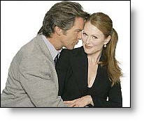 “Laws of Attraction”Interviews with Director Peter Hewitt and actors Pierce Brosnan, Julianne Moore, and Frances Fisherby Chris Monroe, Staff Writer, Christian Spotlight on Entertainment In light of the all negativity we see from Hollywood about marital fidelity, it is encouraging to discover that at least some in the industry want to exhort couples to be committed to the sacredness of marriage. Unlike the atmosphere of a harsh divorce court, discussing the movie “Laws of Attraction” with the director and actors in Los Angeles was a real pleasure. Interestingly, although the film is a lighthearted romantic comedy, those interviewed (Peter Hewitt, Julianne Moore, Frances Fisher and Pierce Brosnan) were quite reflective about some of the serious issues the film addresses.