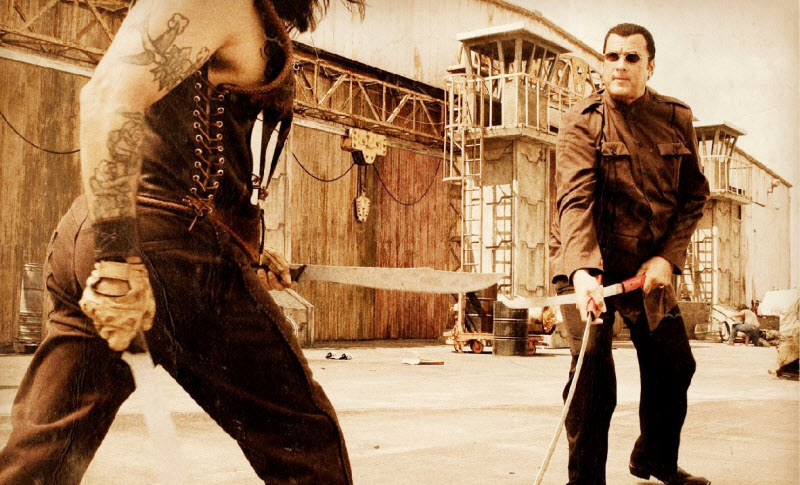 The film is designed to be an homage to the exploitation films that Rodriguez grew up with and, as such, follows a pretty standard plot. “Machete” Cortez (Danny Trejo) is a former Mexican Federale who gets double-crossed in an attempt to assassinate a corrupt state Senator (Robert De Niro). This assassination attempt puts Machete in the middle of a plot between corrupt government agents on both sides of the border and a Mexican drug lord (Steven Seagal). It allies him with a band of Mexican revolutionaries led by a female taco-truck vendor—Che’ Guevara like revolutionary—named Luz/She’ (Michelle Rodriguez, “Lost”). An all out war ensues involving Federal agents, politicians, Mexican drug lords, vigilante border portal agents and even the Catholic Church, each agency having their own agenda. For Machete, his only agenda is vengeance.