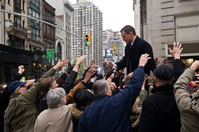 “Fight for your fate.” Are we really the masters of our own fate or is there a higher power at work, guiding our decisions. For centuries, theologians and philosophers across the world have debated the concepts of free will and pre-destination and George Nolfi’s romantic thriller, “The Adjustment Bureau” delves into these theological concepts. The film follows the story of protagonist, David Norris (Matt Damon), an up and coming young politician from New York who is running for U.S. Senate. David’s campaign is on fire until an embarrassing photo from an immature college prank hits the media. Just as his goal of achieving his political dreams seem to be shattered, David meets a mysterious woman named, Elise (Emily Blunt), a talented ballet dancer. David instantly falls for her and after exchanging a passionate kiss, she inspires him to deliver the most sincere a compelling speech of his career, propelling him to the political forefront once again, and he becomes the front-runner in the next election. When David encounters the mysterious Elise again and attempts to start a relationship with her, David quickly learns that his choices are not his own and his life’s direction is not under his control, but is decided by a higher power. David soon becomes privy to a power he didn’t even know existed, after he accidentally witnesses a mysterious group of men, who call themselves the Adjustment Bureau, performing mind manipulation on his campaign manager. David learns that the Adjustment Bureau is a covert group of individuals who quietly carry out the Chairman’s plans for individuals’ lives. David also meets Harry (Anthony Mackie), an Adjustment Bureau agent, who has been assigned to David since birth to be a gentle guiding hand in his life to keep him on “The Plan” that the Chairman has written for David’s life. The agents of the Adjustment Bureau tell David that he was only supposed to have a single encounter with Elise, an accomplished ballet dancer, and they tell him that he cannot be with her and live out the Plan that has been set for his life. David refuses to accept this fate that has been assigned to him and he embarks on a journey to bring he and Elise together, but he must face the Adjustment Bureau, who will do anything to keep them apart. Positive elements and spiritual contentOne can certainly draw parallels between the Christian faith and the film’s themes of free will vs. pre-destination, and the concept of a higher power or a guiding force in our lives. While this film is not overtly Christian and is certainly not allegorical in nature there are many metaphorical aspects to it. During one scene, David asks Harry, the agent assigned to him, if “he is an angel” and when David attempts to better understand who the Chairman is, Harry looks up into the sky and kindly tells David that “we (humans) know him by many other names.” Director, Nolfi’s film takes somewhat of an indecisive stance on the theological concepts that he attempts to explore in this romantic thriller. On one hand, the Adjustment Bureau and its elusive head, The Chairman, are cast as the villains, and the director asks you to root against them, because they are keeping the film’s two protagonists from living out their true love together. On the other hand, the Adjustment Bureau is portrayed as an omniscient guiding force that only wants the best for society. This film also touches upon man’s sinful nature and our need for God, and the consequences of a Godless society. In one scene, David argues with one of the agents about mankind’s lack of free will. The agent explains to David that throughout history the Chairman has given humanity greater freedom to make choices for themselves, but every time the Chairman has stepped back humanity has made decisions that have led society into some of the worst periods in history, such as the Dark Ages, World Wars I and II, and the Holocaust. He also explains that during some of the greatest periods of history, such as the Roman Empire, Renaissance, and the Enlighten, the Chairman exerted much greater power in guiding humanity. The many spiritual aspects of this film are addressed in a rather broad manner and leave much for the viewers to interpret for themselves. Negative elementsOne of the most negative aspects of the film is the manner in which they chose to develop the love story between the characters of David and Elise. I found their first encounter, which resulted in ‘love’ at first sight and ended in a passionate kiss to be rather unconvincing and shallow. I was also disappointed that David and Elise ended up in bed together. The love scene is relatively brief and shows them in bed together covered by blankets but revealing their bare shoulders as they kiss passionately. The film could have been much improved if the director had laid a more convincing foundation for David and Elise’s relationship, and if he had not resorted to the typical Hollywood bedroom scene. Their characters’ brief and shallow encounters made it hard to believe that they were truly in love. There is a moderate amount of violent content in this film. Harry is hit by a car and violently bounces off the windshield before falling to the ground. Harry’s character is all right though. In one of the many chase scenes where the agents are in pursuit of David, the agents cause a car accident to prevent David from getting to Elise. One of the drivers in the accident has blood dripping down his face. “The Adjustment Bureau”’s dialogue is also peppered with profanities. There are over a dozen uses of the s-word, several f-words, and a smattering of other profanities including the words, h—l (approximately 10 uses), b---h, ba----d, d---n, a---, Elise refers to someone as a ‘tool’ and in another scene she jokingly flips David off. The Lord’s name is also profaned more than six times and there are at least one or two uses of God’s name with the pr