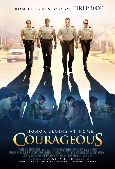 With each new release from the Kendrick brothers, the films seem to be getting progressively better. “Flywheel,” “Facing the Giants,” “Fireproof,” and now “Courageous;” all seem to take it up a notch on filmmaking with each new release. The acting, story development, camera work (with the exception of the shaky gun battle scene), etc. All are noticeably better than the previous films. Will they ever be nominated for an Academy Award®—no—but will they continue to put out films that powerfully convey the message intended—yes. And “Courageous” does just that—the message that fathers matter and can positively or negatively impact the lives of their children and future generations is powerfully displayed. The story weaves its way through the lives of five fathers with varied past and current family situations. Four of the five are fellow officers, and the fifth is brought in through a somewhat comical encounter that becomes part of the story line. The interaction between these men and their families is convincingly portrayed—most notably in the loss of one of the children of the main character. We are made to feel that loss along with the family, and, in one scene at the dinner table, it felt as though I were right there with them experiencing the same sadness. The message is clear—our time is short with our children—sometimes shorter than expected—make the most of our time with them and show them the love of Christ. Another theme that is brought out is the need to break free from past wrongs of poor or absent fathers and begin a new pattern for future generations of your family—multi-generational faithfulness. While no father on earth is perfect, there is a continual need for all of us who are fathers to repent of sins against our families—like neglect, apathy, and being a poor example and to model for them their Heavenly Father. There are quite a few humorous scenes throughout which helps to connect the characters to each other and give a sense of reality to the them. As these five fathers come to the realization that they are not quite where they need to be for their families, they decide to make a “Resolution” that they would endeavor to become the biblical fathers and husbands they need to be. This “Resolution” is a formal document that they sign in a ceremony—I am sure that they will “market” this as they did the Love Dare materials, but as film marketing goes, that is a good thing. There is plenty of action and activity through the film, and, although I felt like 130 minutes may be a bit long, they filled the time very well, and there are only a couple of moments I thought they could have trimmed. To me there was really no “objectionable” content, but the areas for concern to family viewing would be the violence and drug scenes, which by Hollywood standards are fairly mild. The tenseness and emotion of most of the film really doesn’t make it suitable for younger children anyway, and, quite frankly, that is not the intended audience. I highly recommend this film and look forward to future efforts by this team of filmmakers. Violence: Moderate / Profanity: None / Sex/Nudity: None official site: CourageousTheMovie.com See list of Relevant Issues—questions-and-answers. Comments below: