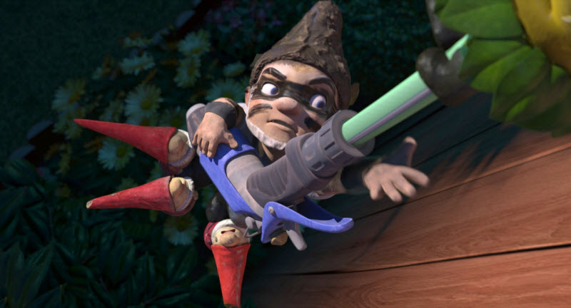 However, with that said, this movie should not have been given a G rating. The level of innuendos and violence should have pushed it up to a solid PG rating. The bitter neighbors call each other names (nitwit, witch, hag, idiot, loser, etc). One gnome says “let’s go kick some grass.” Juliet is told that she “looks hot” and has “nice junk in the trunk.” One gnome who consistently uses wrong phrases states that he loves “going commando.” Some female gnomes are shown with very large breasts and low-cut shirts and short shorts.