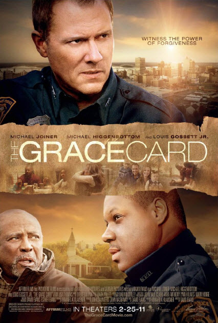 “Witness the power of forgiveness” “The Grace Card” is about a man (Mac) who became a police officer after his 5-year-old son was hit by a fleeing African-American drug dealer. Mac (comedian/actor Michael Joiner) blames himself for the accident that happened in his own neighborhood. Thinking he might prevent such a travesty from happening to another family became a motivation for his joining the force, but his unresolved feelings only complicate his new career. Misguided emotions cause him to lash out at his wife and his second son, over the years, creating a crisis of alienation that comes to full fruition in the film. The setting begins when Mac is teamed up with an African-American officer named Sam (newcomer Michael Higgenbottom), who happens to pastor a church part-time, as well. To add fuel to Mac’s fire, Sam gets a promotion to sergeant—skipping right past Mac—who’d already been recently overlooked for advancement. Sam consults his grandfather (Louis Gossett Jr.) for advice on his own quest for the right path in his life—to make a difference—be it pastor or police officer. Enter the delicate fabric of serendipity—like only God can weave into life in order “to work out all things for good” (Romans 8:28). With that setup, the themes become obvious, but they are not limited to “race issues” in the Deep South. Instead, they go much deeper, and include race, redemption, forgiveness, family, poverty, life, and death. The film is ambitious, and some may argue handles too much, but, just like the recent script from “To Save a Life,” the screenplay (nicely done by Howard A. Klausner, “Space Cowboys”) integrates them all with relative ease. Samuel Goldwyn Co. has been a strong backer for faith-based films (“Fireproof” / “To Save a Life”), and they didn’t disappoint with their distribution of this weekend’s “The Grace Card,” another Christian indie seemingly destined to join the ranks of “Facing the Giants,” with its impressive opening weekend box office—entering the top 20 of all time for a Christian film—and in the top 15 films competing in the secular market this Oscar® weekend of 2011. “For it is by grace you have been saved…” Ephesians 2:8 (NIV) is what truly stands out in this film, in ways that you don’t anticipate. In reflection upon this year’s past films during this Oscar® Eve, I recall the line and theme from “The King’s Speech,” “I have a voice,” which had a powerful punch, or the gritty determination of the young Mattie in “True Grit” seeking justice for her father’s murderer, with biblical determination—both strong films. But I can honestly say that it’s a simple film like this one which can often become a world changer for the believer. These are the kinds of films we long to see, even if they don’t have a multi-million dollar budget. “The Grace Card” has a lot of true grit, and it definitely has a voice. Content for concernTHE GRACE CARD has some raw CSI-cop-show type scenes including some intense violence, racism and drug references, similar to those in “The Blind Side,” or perhaps a Tyler Perry film. There are some police chase scenes, involving criminals, where weapons are drawn and fearful situations surface. A few of those scenes involve blood and have intense action that earn the PG-13 rating. As to sexual situations or nudity, there are none, except the upper torso of Mac’s teenage son in an ambulance. I counted one “for God’s sakes,” and two casual uses of “Oh Lord,” but there was no cussing or any obscenities—even in scenes where it could easily have been inserted. The bad language doesn’t have to be there—and it isn’t. That is refreshing. The direction falls short, at times, with some awkward cuts and scene changes, but, overall, it passes the test. The film is a strong entry for first time director Dr. David Evans, who formed Graceworks Pictures and partnered with Calvary church to produce this work of love. There is a strong supporting cast, many of them volunteers from the local Memphis-area Calvary church, and although the film is formula and predictable, to the point of suspending disbelief beyond the norm, it still works. Final thoughts and spiritual application“I promise to pray for you every day, ask your forgiveness, grant you the same, and be your friend always” is the statement that becomes the Grace Card. Where this comes from, and how it’s played out in the film, is for you to find out. Although it has a slow and somewhat choppy beginning (acceptable for a first-time director), it leads to one of the more remarkable and emotional endings I’ve seen in a film in a long time—Christian or secular! It is heartfelt and believable, and one that has a lot of staying power. If we as believers are willing to use “the grace card” and not “the race card” (race as a “catch all” for anything we disagree with), more of the world might possibly hear the message of the gospel—one of forgiveness and love—that invites every sinner to repentance, and to freely receive the gift of eternal life in Christ Jesus. “City on Our Knees” (Toby Mack), one of the many great songs used in the film soundtrack, has the following lyric: