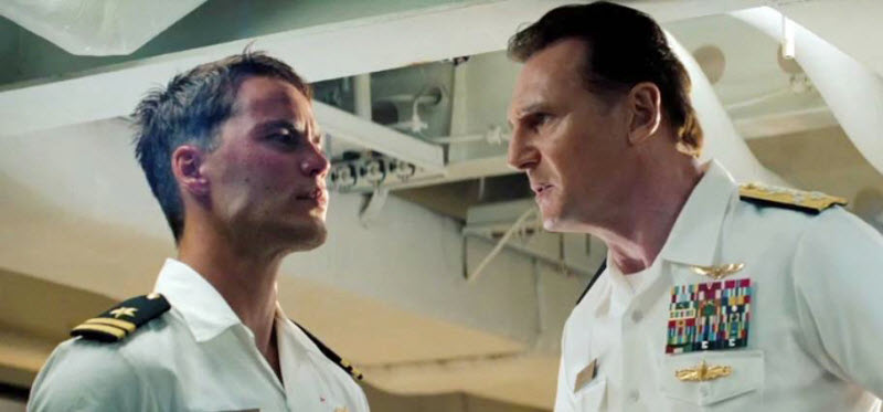 “the battle for Earth begins at sea” Alex Hooper (Taylor Kitsch) has no job, no money, and no goal in life. His brother, Stone Hopper (Alexander Skarsgård), a commander in the Navy, repeatedly tries to get him to take some responsibility for himself, but Alex has no interest in anything other than trying to pick up girls at the bar. So, in an attempt to get him to straighten up, Stone enlists him, and the next thing Alex knows, he is on a battleship in Hawaii, preparing to participate in a series of exercises at sea. Unfortunately, even there, Alex is headstrong, disobedient, and reckless, even catching (negative) attention from Admiral Shane (Liam Neeson, being his usual excellent self) who warns him that his career in the Navy is in serious danger of being very short-lived. In the meantime, NASA has sent transmissions to an alien planet which they believe may sustain life. “If there is intelligence life out there, and it comes here, it will be just like Columbus and the Indians, except we’re the Indians,” warns a scientist, but eager to communicate with extra-terrestrial life, the government doesn’t heed him. The response is not what they expect, and before you can say “I sunk your battleship,” five alien ships have plummeted through Earth’s atmosphere. Some of them crash into Hong Kong, leaving the city in ruins. Others come down in the Pacific Ocean, conveniently close to the battleship exercises. Suddenly, Alex Hooper and his fellow soldiers find themselves in the midst of a war between man and alien, a war for the ownership of the earth. “Battleship” invites comparisons to “Transformers,” in that both share a similar style of action and both are based on Hasbro toys, but “Battleship” succeeds where “Transformers” failed—by giving us human characters that aren’t annoying and that we actually care about, Alex in particular. He starts out an aimless, foolhardy young man. His brother, who admirably looks out for his well being, admonishes him: “Who can I call to teach you humility? You have so much potential.” That potential comes to light when Alex is forced into a position of leadership. He steps forward and bravely faces down massive adversaries. When revenge blinds him and causes him to put the lives of his men at risk, he is forced to put aside selfish motives and put others before himself. In the end, he uses his skills, his cleverness and his loyalty to his mission to rise up as a leader and a man worthy of respect. Other characters are equally admirable. Soldiers, time and time again, put their lives on the line and work together as a team to protect their country and, ultimately, the world. Indeed, self-sacrifice, courage, and honor are all traits that are positively portrayed. Nods to veterans, both past and present, are also welcome. Alex’s girlfriend, Sam (Brooklyn Decker) is a physical therapist who desires to help wounded veterans recover. Although it is implied that they have a sexual relationship, marriage is lauded, as Alex plans to marry her and even ask her father for permission, beforehand. “Battleship” does have content issues. Sam, showing a lot of cleavage in a bikini, makes out with Alex on the beach. Language includes multiple abuses of God’s name (OMG—5, “My G_d” 2, “G-d_mn” 1), several uses of the s-word and three f-words (two unfinished). Most of the violence is extremely explosive mayhem, including clashes between battleships and spaceships, airplanes and spaceships, helicopters and… , well, you pretty much get the idea. The body count is very high, although little blood is seen, although when the aliens disembark, the violence becomes more physical and one-on-one and some characters to end up with bloodied faces. However, in the end, “Battleship” is a better film than it has any right to be. The action is fast, furious and largely bloodless. The special effects are phenomenal. The actors are all strong, with Kitsch making a much better Navy soldier than he did as John Carter, earlier this year. Sure, the screenplay is clichéd, and the story is basically there to hang action scenes on, but do we expect anything more from a summer blockbuster? At least there is a story with positive character role models. Furthermore, nods to the board game on which it is based are very impressively used, right down to the hit-or-miss tactic and the use of numbers and letters. So, with the above content issues in mind, “Battleship” gets my recommendation. Violence: Extreme / Profanity: Heavy / Sex/Nudity: Moderate See list of Relevant Issues—questions-and-answers. Comments below: