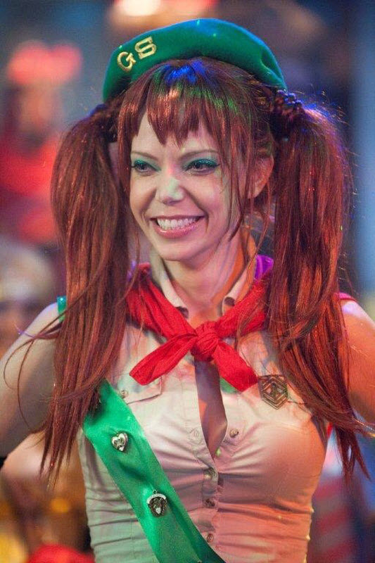 Albert goes to what appears to be a bar with an older girl, again dressed in a sexy costume, and they are dirty dancing at the club until a bully comes and takes Albert’s candy stash from him. Later, April calls Wren from Aaron Riley’s party saying “he’s here,” making Wren believe she means Albert (she intentionally misleads her and later admits it was intentional). At this party, we get several close up shots of April’s chest as Peng decides to claim her promise. He chickens out, but she grabs his hand and puts it on her boob and tells him “no honking.” Later, to save Albert and Wren from the cops, we see Fuzzy strip down naked and go streaking down the road to divert the cops’ attention to him. We see him from the back running, and I can’t remember if they blurred it out or if you could see clearly.