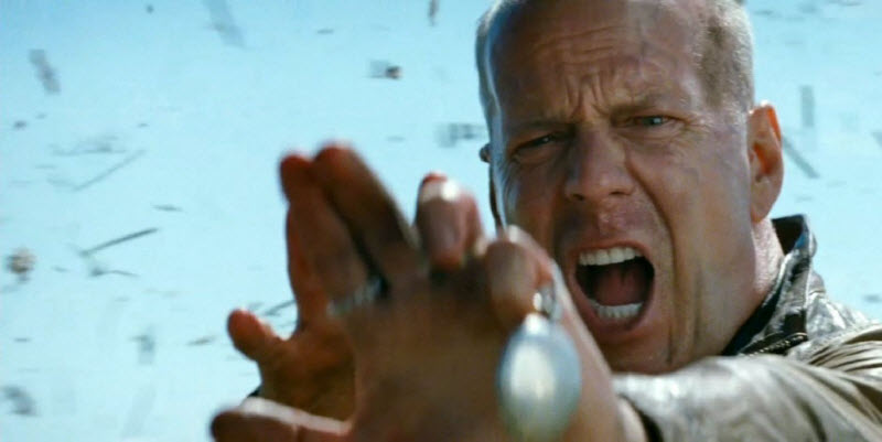 There is some attempt to show a moral journey for the younger version—at the beginning he’s self-serving and just wants his life back, but by the end, is willing to sacrifice himself for the good of others (only by suicide, which might not be seen as a good thing). Another thing this film gets wrong is that it doesn’t really deal with temporal paradoxes realistically- either you can’t change the future, or you create a new alternate future, or at the very least you can’t change it in such a way as to create a contradiction in events. This film does create a contradiction. Moral rating: Very Offensive / Moviemaking quality: 3½ —Richard, age 27 (United Kingdom) Neutral—The movie was entertaining. I’ll say that. Yes, I had a good time, and even though I usually don’t like action/violence films, I really wasn’t bothered by this one. HOWEVER, I was bothered by the excessive language and nudity. If those were thrown out, it would’ve been a pretty good film. I know some people say the movie was hard to follow, but, personally, I found it very predictable. I couldn’t tell you the entire plot going into it, but I could usually tell you exactly what would happen during the next 2 minutes based on the previous 2 minutes. By the way, the child actor was wonderful!! Look for more movies from him in the future, I’m sure! He was the best part of the movie!