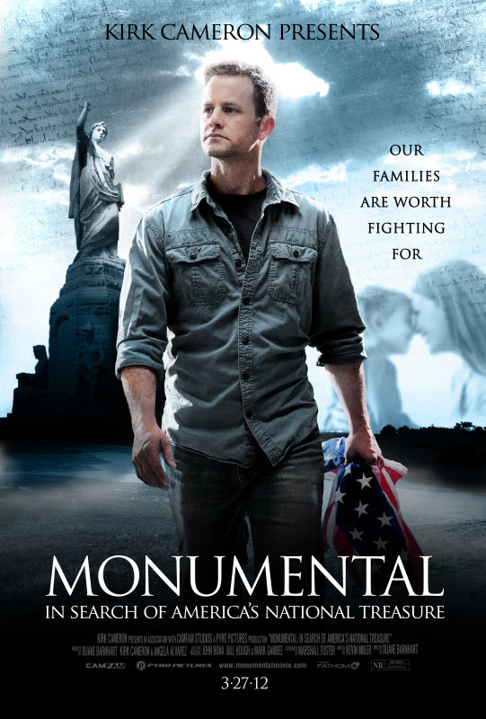 “Our families are worth fighting for.” “Are we going down the wrong path?” “Are we supposed to just let it go?” Have we forgotten what made our nation so great? These questions are brought to our attention in Kirk Cameron’s documentary “Monumental,” a film that raises questions about today’s culture and how our nation, as a whole, is rolling on a decline. I attended the live event of “Monumental” on March 27th (2012), and I could not believe the turn out… I found out that not only my local theater sold out, but numerous theaters across the country did, as well. The event mainly consisted of Kirk Cameron doing a “pre-show” and “post-show” from his home, live. He conducted a few interviews with some of his family and friends and also invited a few Christian music artists to his home to share some songs with the audience. However, March 27th is not the only showing. Over 500 theaters across the country will be showing the full documentary (which runs around 90 minutes) starting March 30th. The documentary, itself, was pretty impressive for a low budget, independently made film. The documentary begins with Kirk giving us a history lesson on the Pilgrims. We are told how they overcame the odds to start their very own nation—America. But that’s not all. Kirk travels to parts of Europe and parts of the east coast to gain more knowledge and insight on how these brave men and women survived and overcame numerous obstacles. From fleeing England to sailing to Plymouth, Kirk Cameron covers a lot of the Pilgrims” journeys and discovers how they made our nation so great. As Kirk travels through Europe and America, he meets with historians, so we can even receive a more in depth look on what the Pilgrims did to bring this nation from the ground up and how government originally ran the country. We are even introduced to an amazing monument that many Americans have never even seen or heard of before… including myself. Although the film is rated PG for “some mild thematic elements,” there is really no content for concern in this film. I recommend this “Monumental” for ages 8+, mainly due to the theme and nature of the film, since most young children won’t fully understand its messages. At the most, “Hell” is used twice, in reference to a specific location and rape is mentioned once or twice, just to describe that Pilgrims didn’t come to kill or steal from the Native Americans. We also briefly see one or two Native American men in a historical flashback wearing traditional loincloth (no nudity). Unfortunately, times have changed and government doesn’t run the same way it used to, back in the days of the Pilgrims. Instead of the government making a stronger nation, they’re making it a weaker one—step by step. That is the message I received from “Monumental”. But we mustn’t play the “blame game,” as Kirk states. And I agree, whole-heartedly. We can’t just blame the government for the state our nation is in; the people of America are responsible for this nation, too. We caused the problem, and we need to fix it; and that time is now. We have forgotten what made our nation so great—what Christian values and traditions it was founded upon, and we must always hold onto them. God blessed us with this land, and it’s time to restore what has been lost. As Kirk Cameron says in one of his closing statements, “The answer [for change] doesn’t begin at The White House, but at your house.” That’s a powerful statement declaring that we the people of the United States need to rise and restore this nation before it’s too late. Many need to hear the messages of “Monumental,” but few will see it. So I strongly encourage you to see this film, as soon as possible. Since the film is only in about 500-600 theaters, it may not last long… unless we can fill those theaters, so the film will run longer. Kirk Cameron had the courage to make this film, and we need to make it last long in the theaters. God bless Kirk Cameron, and may God bless America. Violence: None / Profanity: None / Sex/Nudity: None Official Web site: MonumentalMovie.com See list of Relevant Issues—questions-and-answers. Positive
