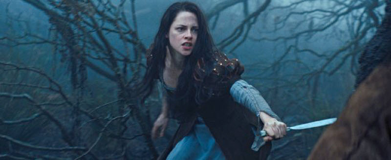 The violence is heavy. There are several battle scenes (one might argue they take up the majority of the film). People are vividly stabbed with swords, knives and punctured with arrows. The deaths are a bit more realistic than usual, with the victims writhing in pain and then dying. Some are shown decaying after their deaths. Ravenna straddles the king and stabs him in the heart. Ravenna is shown stopping people’s hearts and sucking the youth from young girls. Snow White is violently poisoned by an apple.