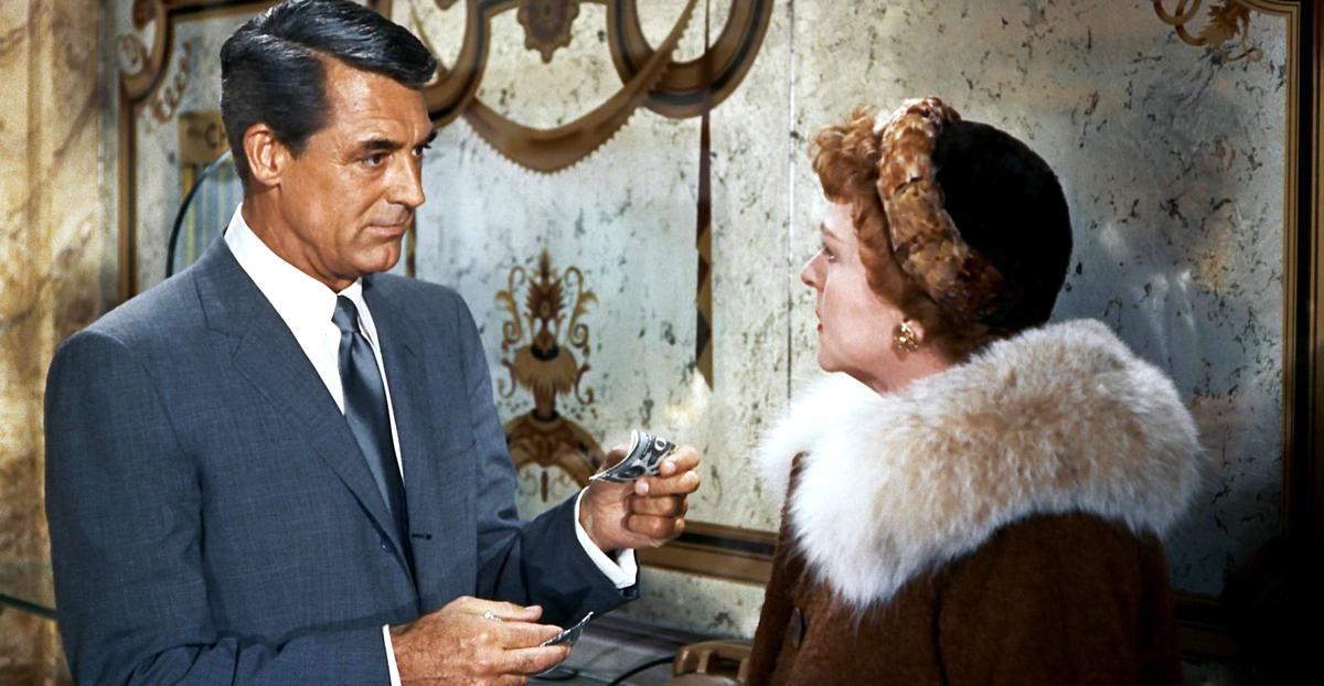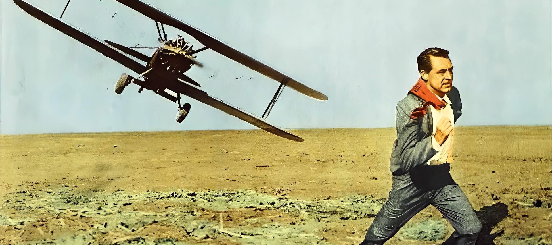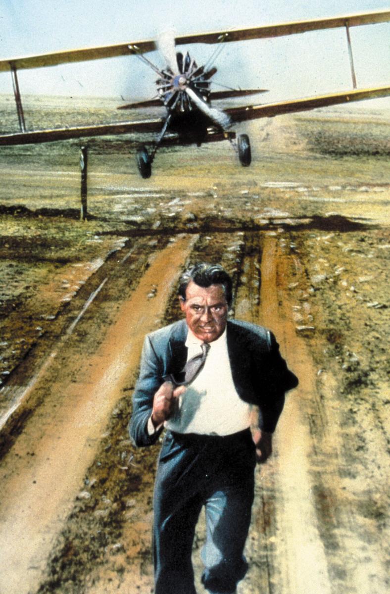Advertising exec Roger Thornhill (Cary Grant), dining out with business associates, stands up to summon a waiter just as the name “George Kaplan” is being paged. The page was called in by Communist spies who are trying to intercept the Western agent, Kaplan, before he exposes them.