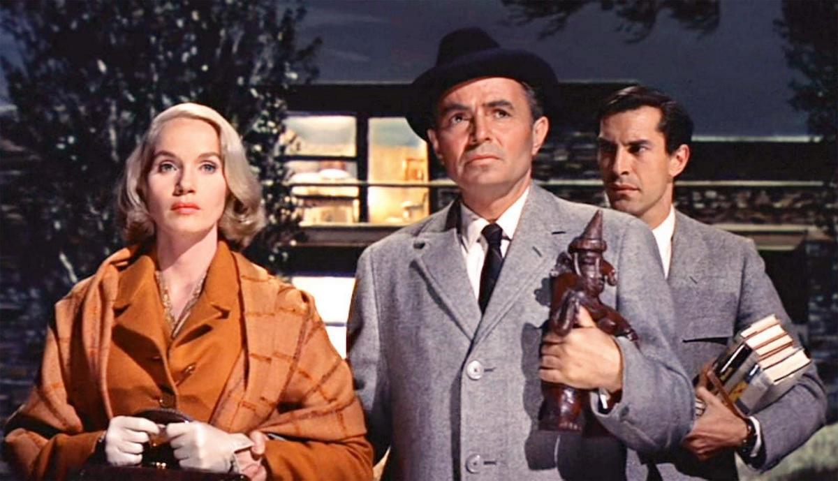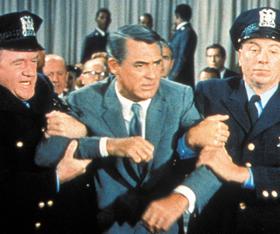 The bad guys (including James Mason and Martin Landau) immediately abduct Thornhill, grill him, drug him and attempt to send him over a cliff in a stolen car. Thornhill escapes; but in setting out to prove his innocence of car theft, he is later accused of murder.