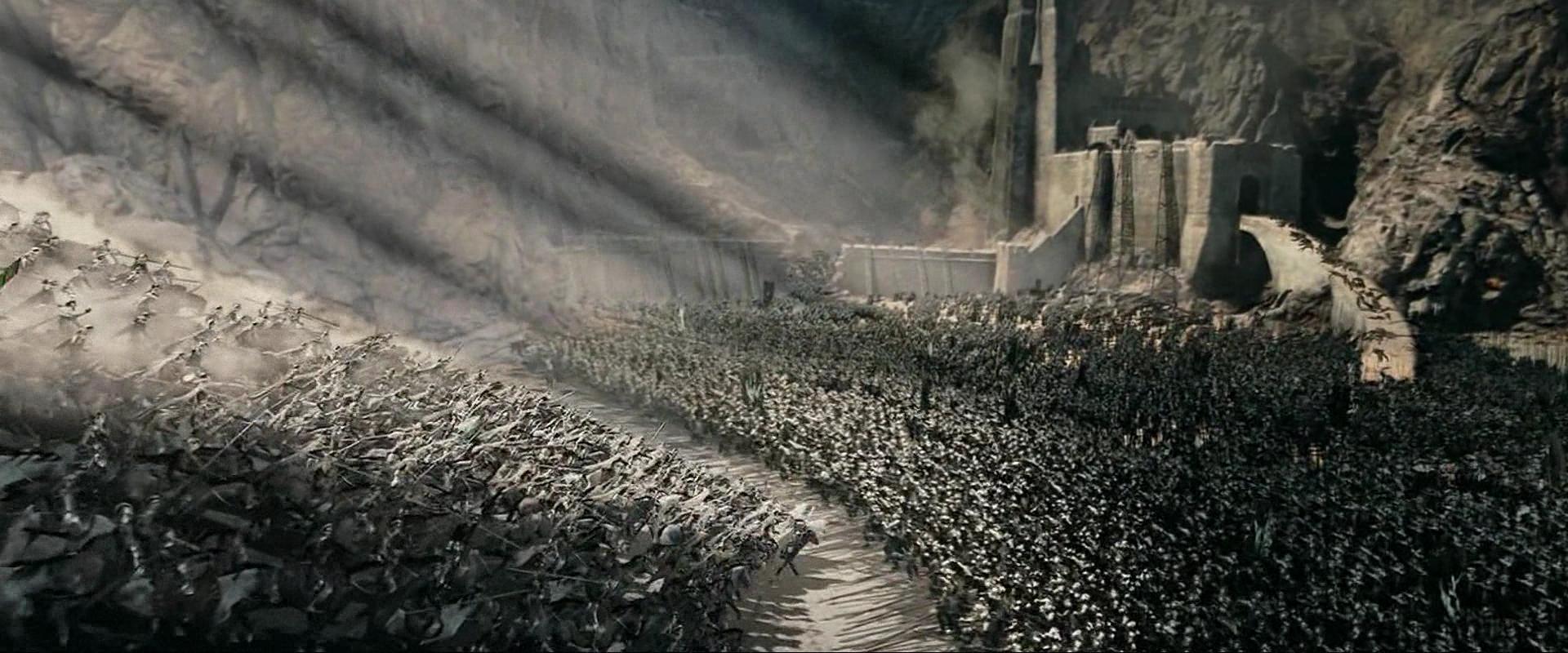 Wouldn’t it be wonderful if we could spot evil so easily in our lives? The war between good and evil at Helms Deep was impressive and inspiring. Churchill said nothing is as exhilerating as being shot at without effect. I felt this through the triumph of Aragorn in the great battle. Gandalf assumes even a more powerful and angelic role than in the Fellowship. Whether this is suppose to be Christian imagery or not I do not know. Nevertheless, it certainly made me think of the spiritual realm.