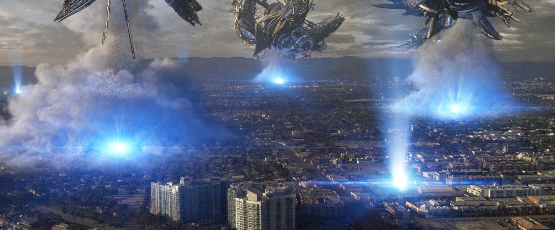 The film then rewinds to the preceding fifteen hours to introduce Jarrod (Eric Balfour) and his girlfriend Elaine (Scottie Thompson). Both are heading out to L.A. to visit Terry, Jarrod’s friend, who has found success. Though Elaine and Jarrod are in awe of Terry’s lavish lifestyle, they all soon find themselves sharing the same fate, as the aliens quickly take over the city. In horror, they see the blue beams abducting defenseless humans by the hundreds. The friends must now figure out how to withstand the aliens’ alluring light and survive the catastrophic invasion.