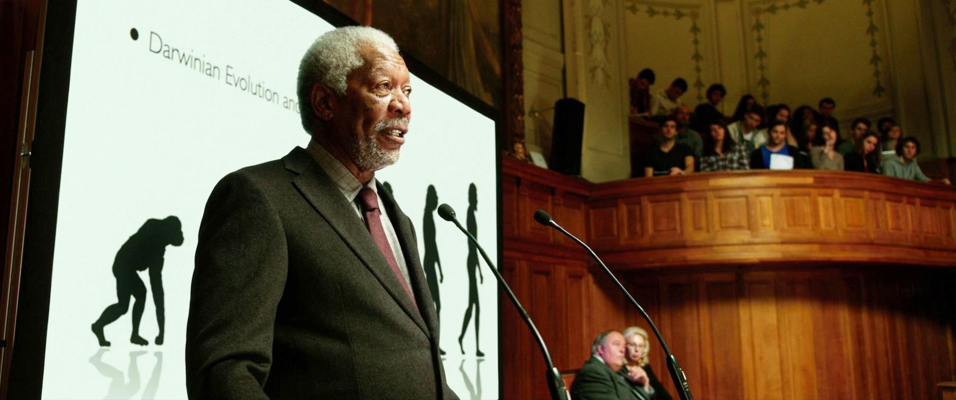 “Lucy” opens with this line and shows an alleged pre-human ape-like creature (Lucy) drinking water from a stream. We then travel forward “billions” of years to modern day China and meet the present-day Professor Norman (Morgan Freeman), talking about Darwinian evolutionary theory. He expounds on the “fact” of Darwin’s theory and states how we are merely cosmic accidents, no different than earthworms and time and passing on our genes is our only purpose.