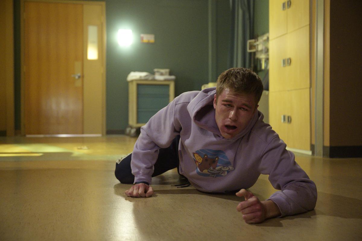 A character is strung up by a chain on a fan, the character breaks free but not before falling on fire on the ground (he survives). A character is almost hit by two vehicles. Another character is grabbed by a garbage truck by accident and have their head, uh, “compacted” (their head is cut in half and their arm is cut off). A character receives a “nut check” (someone getting hit in the privates). Two boys make a plan to cheat death by causing one character, who is deadly allergic to peanuts, to eat a peanut butter bar. In all this, one of the characters is pulled in by an extremely powerful MRI machine, as is the wheel chair behind him, due to the metal on his body and the wheelchair legs come apart and go right through him. The other boys asphyxiates on the peanut butter bar but not before being drawn into the MRI as well and having a metal item go through his head.
