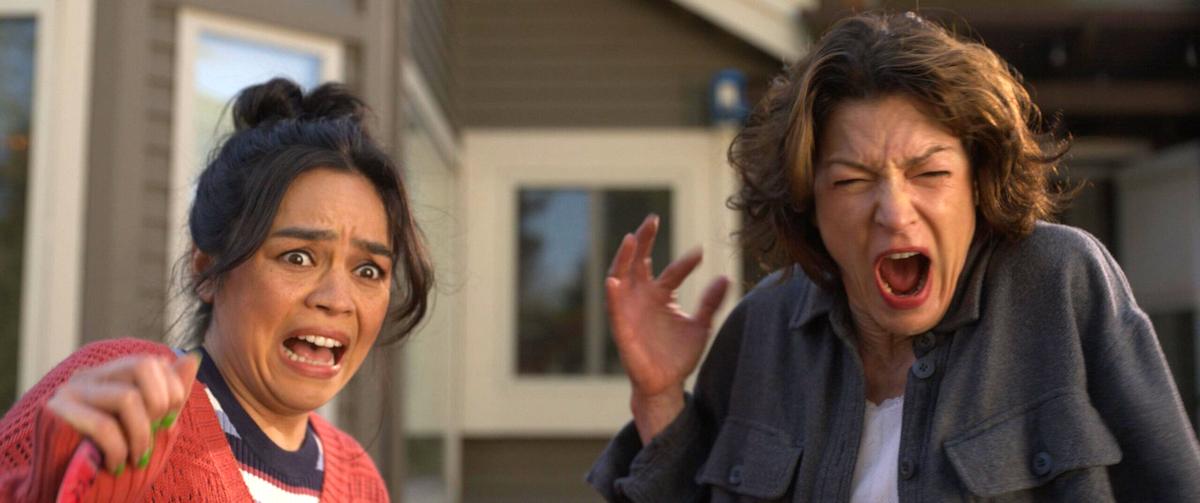 In other scenes, a man is playing Mortal Kombat and a character in the game is seen stabbing someone through the top of their skull. A weathervane falls off a roof and goes right through someone’s face, causing the person’s tissues and jaw to fall off (this is shown twice). Someone almost chokes. Pictures in Iris’ show the various ways each of her family members may die. A flame from a grill ignites and almost burns a character. Glass goes through someone’s foot. A lawnmower rolls over someones head and, uh, “blenders” it (it’s extremely graphic). Someone is seen having their tongue pierced (close up shot).