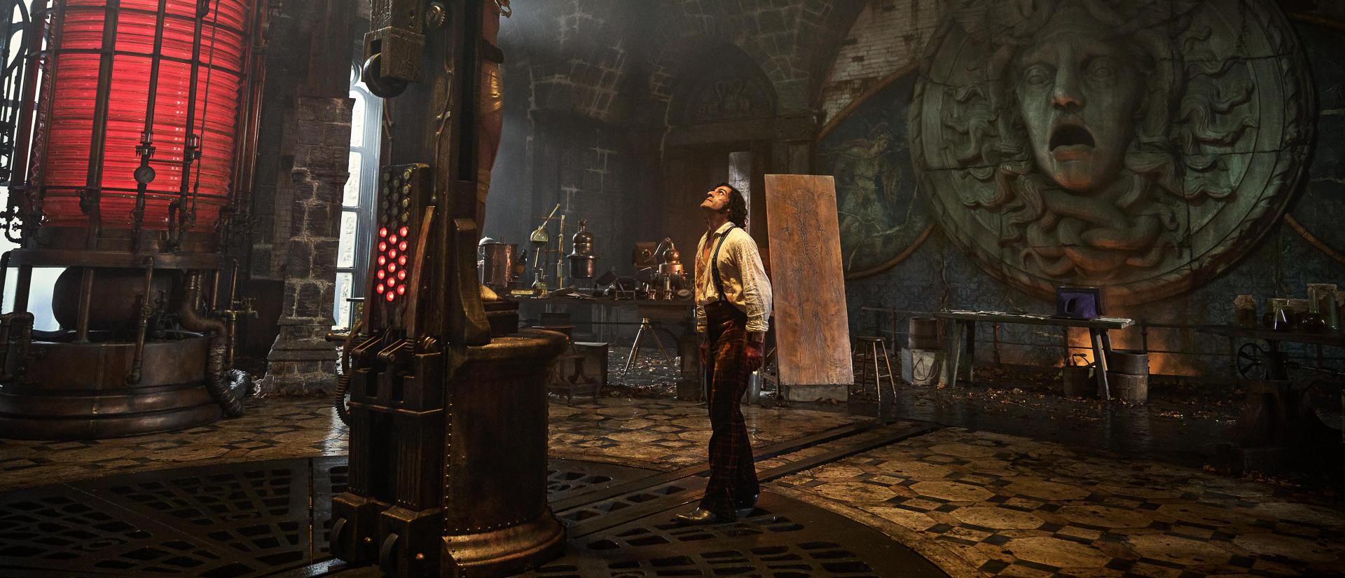 Victor commits awful acts with a bonhomie that is chilling. He has no second thoughts about selecting his future laboratory cadavers from line-ups of men waiting to be executed at the gallows, seducing his brother’s fiancée (Mia Goth, beautiful in multiple shades of chiffon and tuille but emotionally inert), posing as a priest in a confessional, and shirking responsibility for deaths that he himself brings about. There’s more to Victor’s abnormal mindset than a troubled childhood. He acknowledges a dark angel, and Del Toro presents one in the form of a fiery armed sculpture, but the director shies away from any spiritual component to evil and to man’s saying yes to that force.