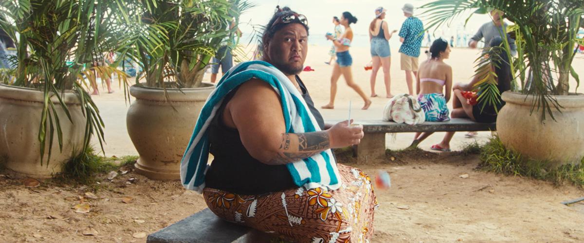 ALCOHOL: Someone is seen drinking a Piña Colada and other beach attendees are seen drinking as well.