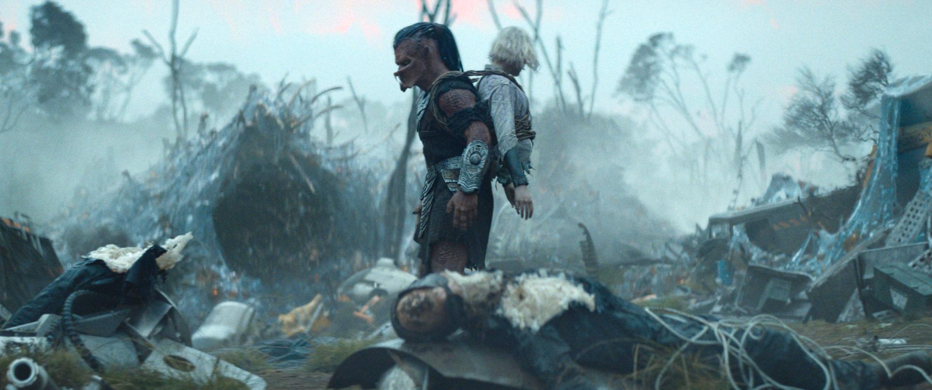 The Weyland-Yutani Corp has been on the planet to harvest a few of these dangerous beasts of prey, including the Kalisk, for nefarious means. Thia was a part of this plan until a Kalisk destroyed the base she and many other androids were stationed at. This includes her artificial “sister” Tessa (again played by Elle Fanning) in a very entertaining dual role of the innocent Thia and the manipulative Tessa. Tessa and the other surviving soldier-androids are friendly enough at the first encounter with Dek but soon true ambitions are shown and Thia must figure out who her true “family” really is. On his home planet Dek found out that family doesn’t always mean acceptance. In the same way Thia will find out some hard truths about her “sister” as well. Both of these characters will help each other grow and heal as Dek continues to pursue acceptance albeit not in ways he thought he would.