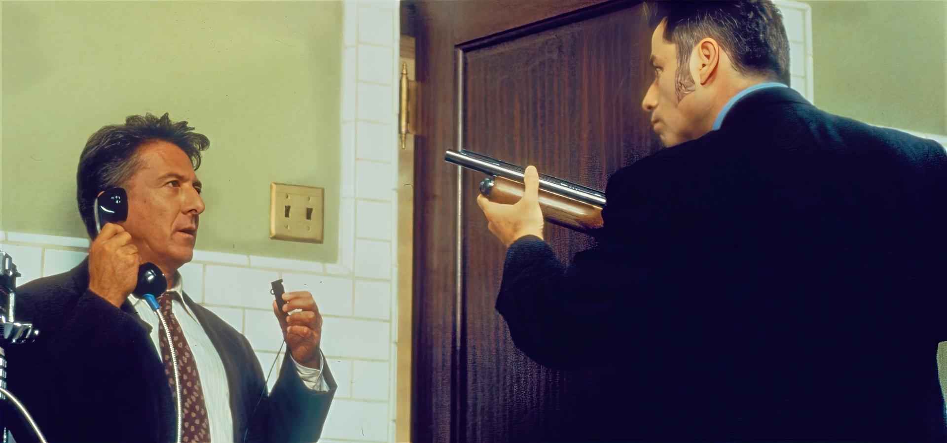 “MAD CITY” is a film about a has-been L.A. TV reporter Max Brackett (Dustin Hoffman) and his up-and-coming assistant Laurie (Mia Kershner) who are at The Museum of Natural History to cover a so-so story when Sam Baily (John Travolta), a simple-minded, gentle man nervously enters the museum hoping to get his job back. He confronts his boss, Mrs. Banks (Blythe Danner) with a shotgun and a duffel bag full of dynamite. He fires the gun “to get her attention” and accidentally shoots a fellow guard.